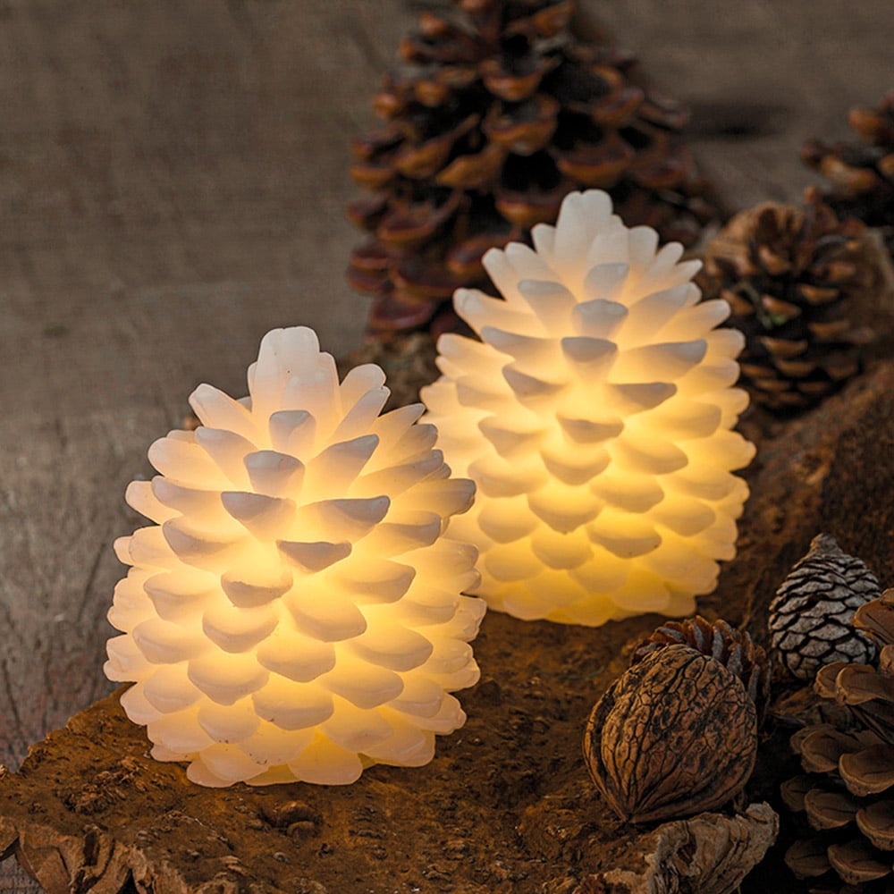 Skab en stemningsfuld og hyggelig atmosfære i hjemmet med de to kogler – et sæt bestående af to smukke voksfigurer med indbygget LED-lys. De bløde, varme lysglimt giver en beroligende glød, der passer perfekt til mørke vinteraftener og julehygge.