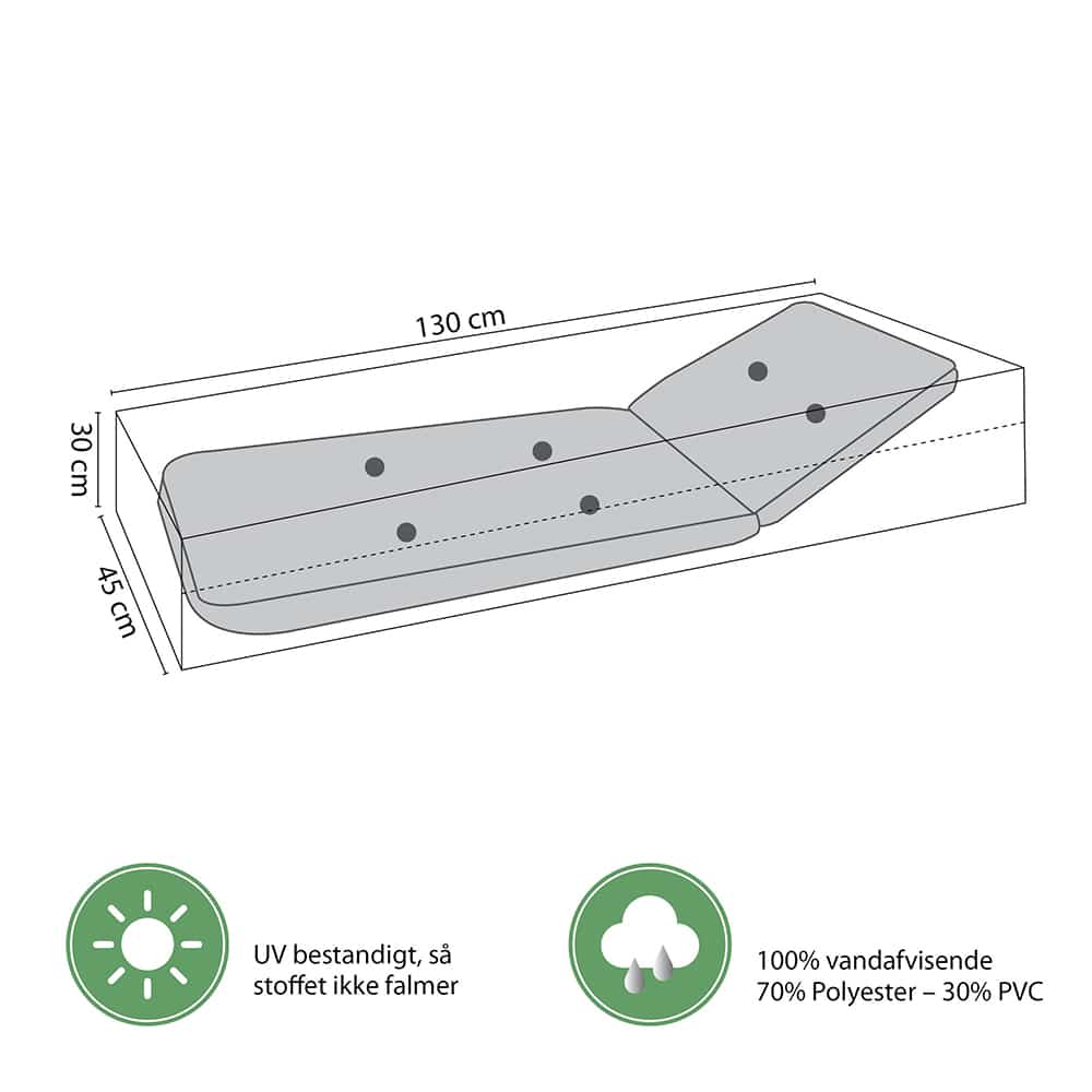 Dette kraftige overtræk til hynder er coated på indersiden så det er 100% vandtæt. Materiale: 70 % Polyester 30 % PVC. UV bestandigt så stoffet ikke falmer.