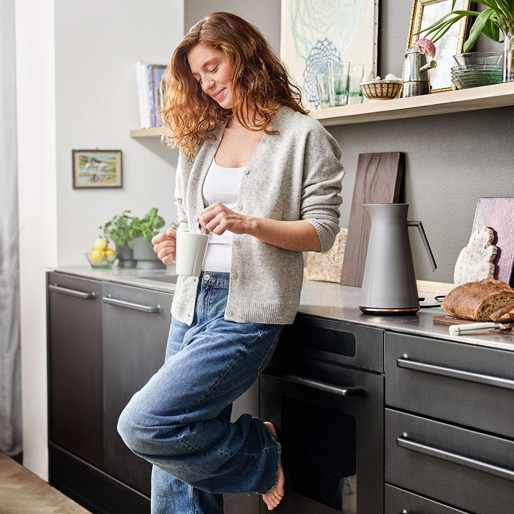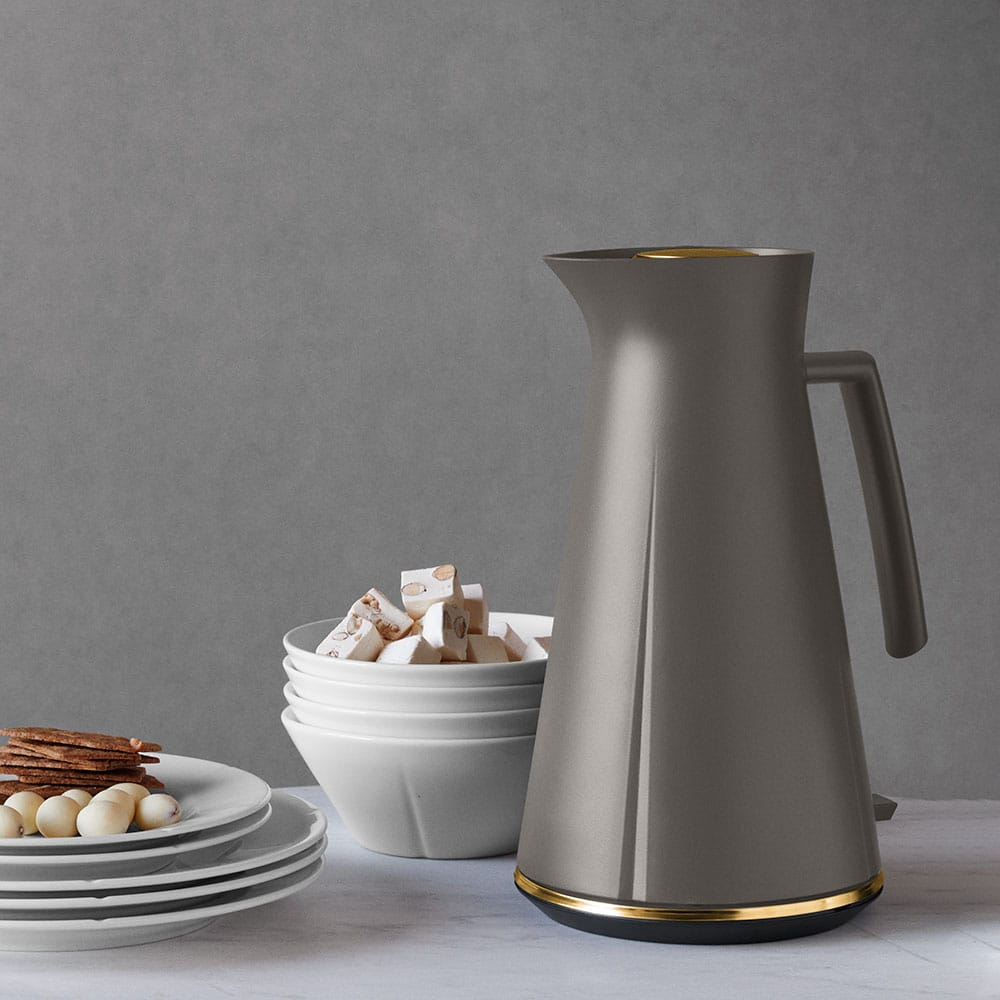 Rosendahl Grand Cru Elkedel med en kapacitet på 1,4 liter i grå farve kombinerer stil og funktionalitet på smukkeste vis. Den elegante og moderne elkedel er en perfekt tilføjelse til ethvert køkken og passer til enhver indretning. Med sit enkle og stilfulde design vil denne elkedel være et praktisk og æstetisk tiltalende valg til din daglige te- eller kaffeoplevelse. Den har en kraftfuld opvarmningskapacitet og en bekvemt placeret tænd/sluk-knap for nem betjening. Den robuste og holdbare konstruktion sikrer pålidelig ydeevne og langvarig brug. Med Rosendahl Grand Cru Elkedel kan du nyde din foretrukne varme drikke med stil og lethed.